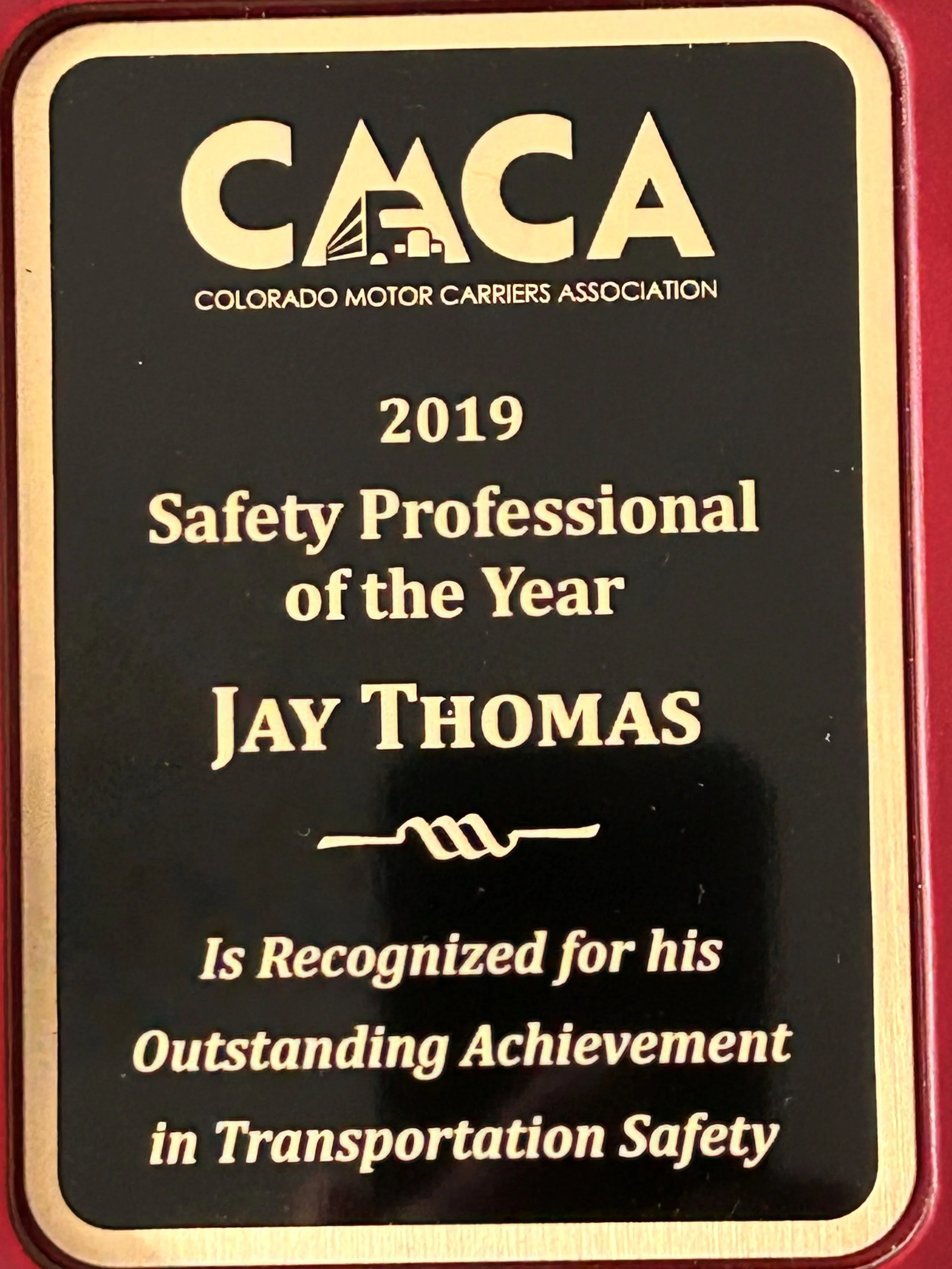 In 2016 Thomas was voted the Kentucky Trucking Association Safety Chairman. Thomas was awarded the Colorado Safety Professional of the Year in 2019. He is a member of several state and national Trucking Associations and has been a part of the Truck Driving Championships for over 18 years.